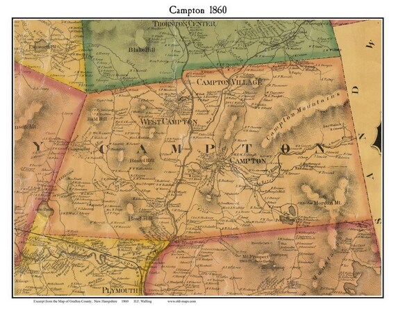Campton 1860 Old Town Map With Homeowner Names New Hampshire