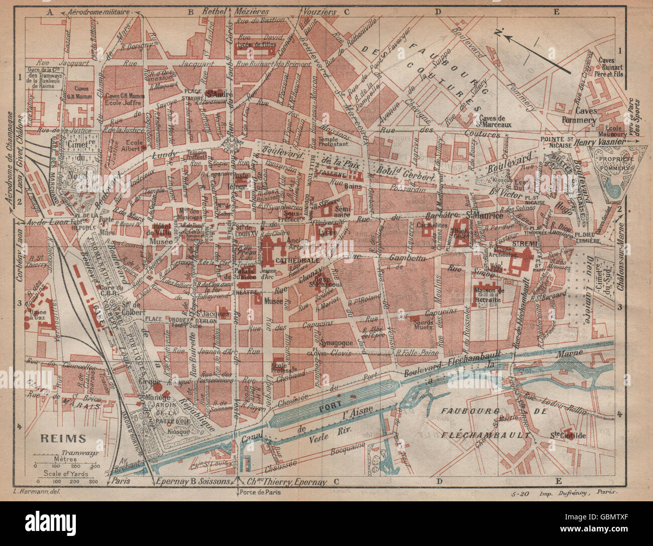 REIMS. Vintage town city map plan. Marne, 1920 Stock Photo Alamy